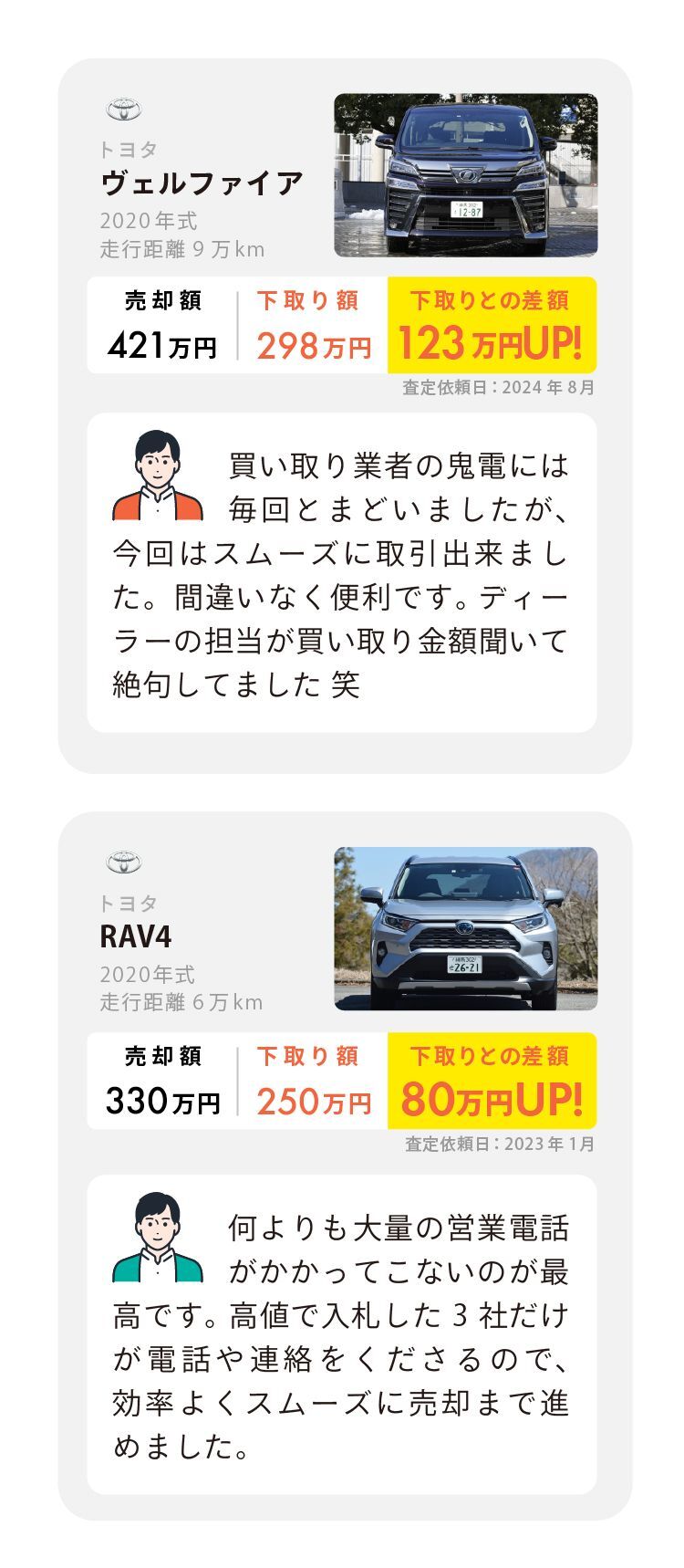 ※上記口コミは、個人の感想であり、査定額を保証するものではありません。